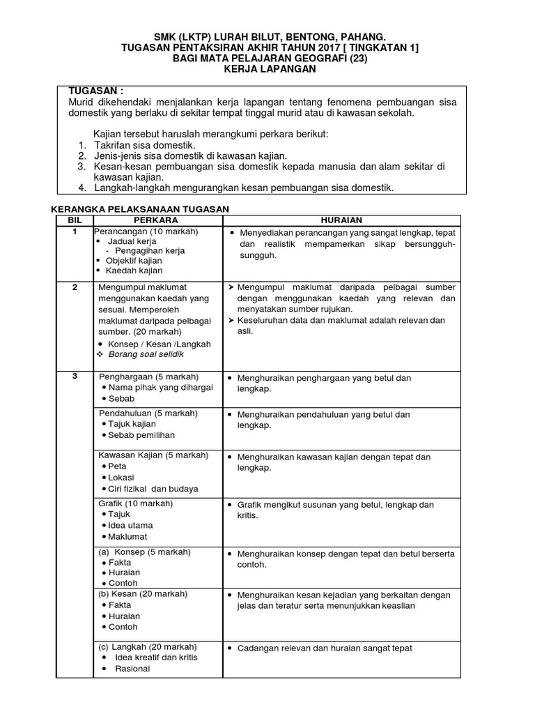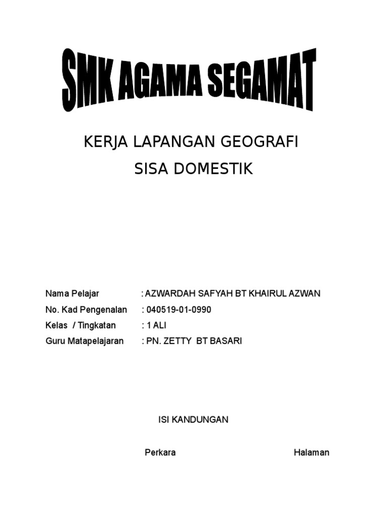 Geografi Ting 1 Kerja Lapangan Sisa Domestik